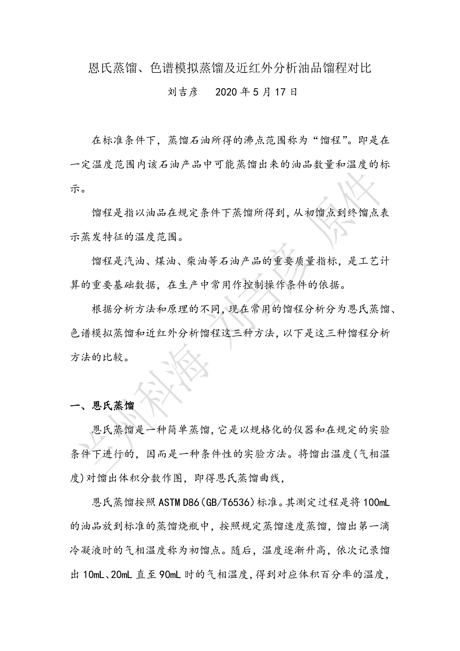 煤油產物恩氏蒸餾、色譜摹擬蒸餾及近紅外餾程闡發方式對照